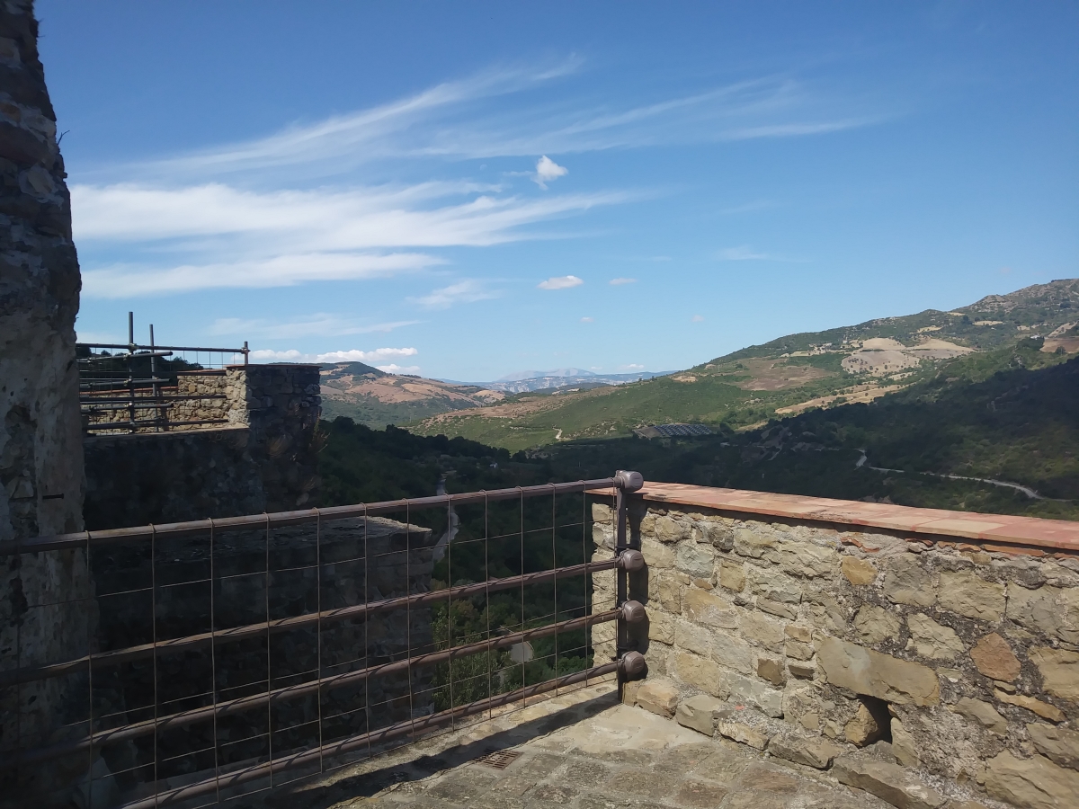 Dal castello la visuale che si ha intorno è pazzesca e fra qualche chilometro inizierò a vedere il mare all'orizzonte. Nel mentre che scatto qualche foto incontro uno dei ragazzi della compagnia teatrale. Si parla del mio percorso fino a qui e del fatto che secondo lui la strada per arrivare a Rotondella sarà impegnativa, in quanto una continua lieve salita. Non mi sembrava avendo dato un'occhiata il giorno prima. Mi sbagliavo.