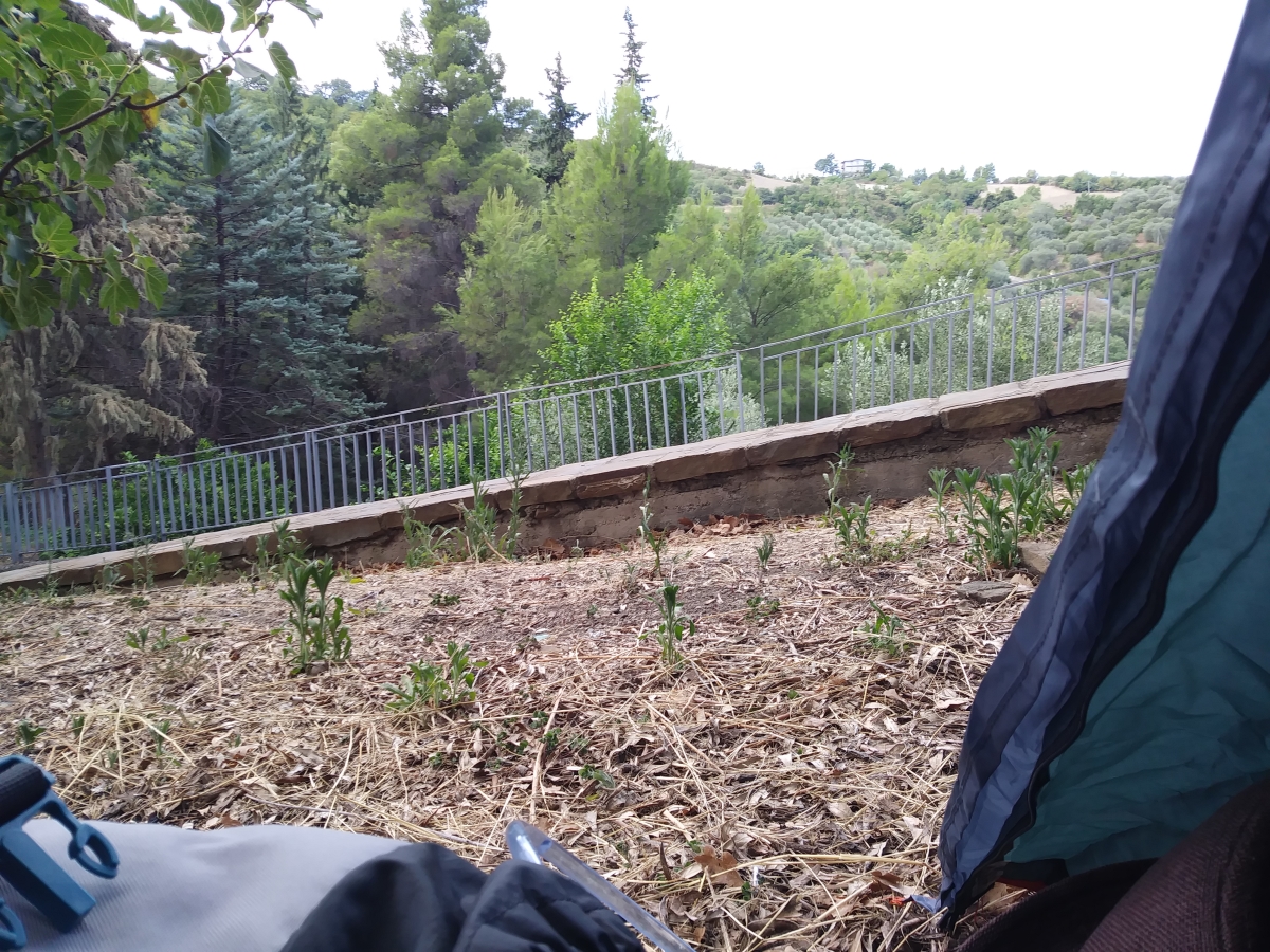 Anche svegliarsi però ha il suo lato positivo. Non si aprono porte. E poi altre porte. Una cerniera e si è già in mezzo al verde, a osservare il sole che si arrampica pian piano per dare inizio alla giornata. Stamattina comincio così. Non ho dormito granché, ma mi sento riposato. E felice anche per la bella serata trascorsa. Sento che l'esperienza sta prendendo quella piega che definivo come sociale.